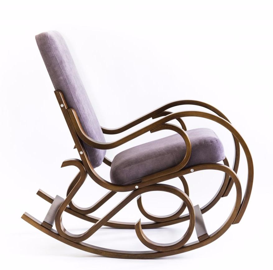 Кресло-качалка с тканевой обивкой цвета Лиловый и каркасом цвета Вишня