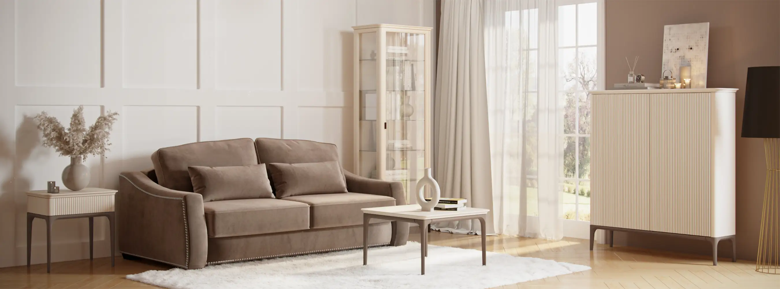 Мебель Primo для спальни и гостиной – это кровати, тумбы, комоды, консоли, письменные и журнальные столы, витрины и другие предметы с универсальным лаконичным дизайном для разных интерьеров. Предметы изготавливаются из массива бука, березовой фанеры и МДФ.