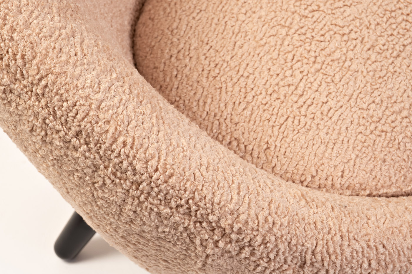 Дизайнерское кресло модной яйцеобразной формы - хит интерьерной моды. Обивка под каракуль мягкого розового оттенка, подушка на сиденье и полукруглая спинка, плавно переходящая в подлокотники, зовут и манят в свои объятия. Искусственный мех - дань защитник...