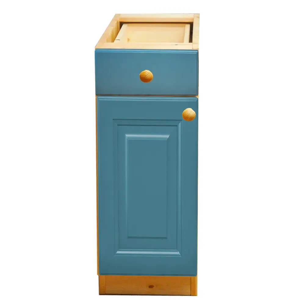 Тумба изготовлена из высококачественного мебельного щита толщиной 20 мм, прочного и долговечного. Задняя стенка и дно ящика сделаны из оргалита. Внутренне пространство тумбы разделено полкой. Ящик на шариковых направляющих полного выдвижения, рассчитан на нагрузку до 25 кг. Дверные петли оснащены механизмом плавного доведения. Отделка УФ-лаком от крупного производителя The Sherwin-Williams Company (всё, кроме фасадов) и итальянским НЦ-лаком (фасады) придаёт шкафу элегантный и современный вид. В комплекте идут удобные деревянные ручки-кнопки. Столешницу можно заказать отдельно.