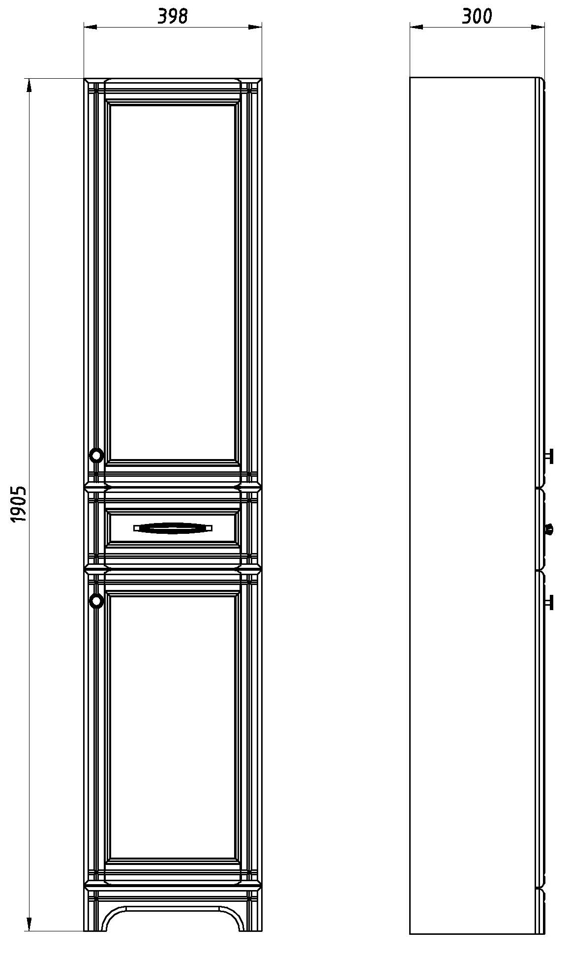 Этот пенал выполнен из массива ясеня, что гарантирует его долговечность и надёжность. Два выдвижных ящика с доводчиками и две распашные дверцы обеспечивают удобство использования и доступ ко всему необходимому.