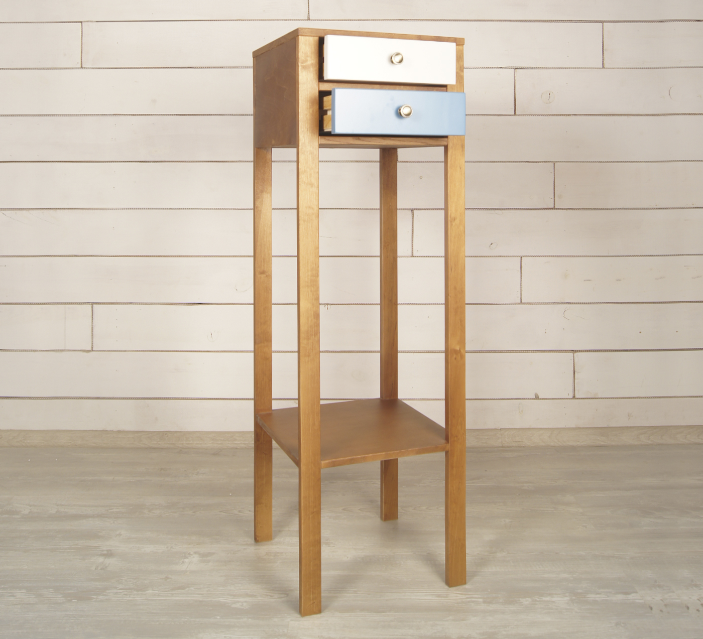 Деревянная высокая консоль "Aquarelle" невероятно универсальна, она станет отличным решением как для Ваших комнатных растений, так и может послужить оригинальной этажеркой в прихожей, в ящички которой сможете поместить все необходимые мелочи. Фасады ящиков можно выполнить в любом из цветов, которые есть в нашей палитре.